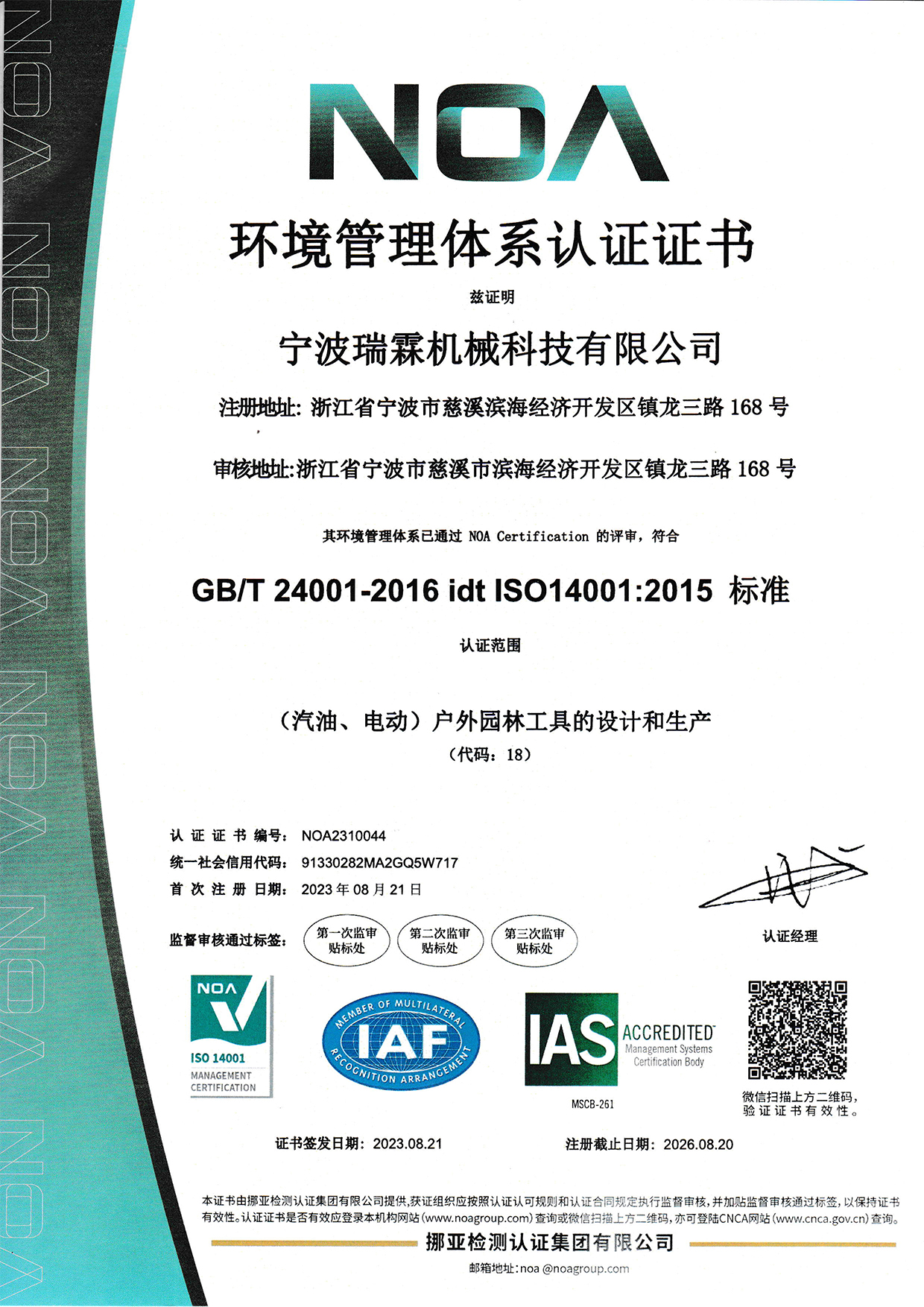 宁波瑞霖机械科技有限公司(简称NGP)是MK在线官网的全资子公司,成立于2019年4月,位于浙江省慈溪滨海经济开发区镇龙三路168号,占地面积约50000平方米。公司拥有雄厚的技术力量和先进的生产设备,是行业内规模最大的企业之一。NGP集产品设计、开发、生产、销售和服务于一体,主要从事各类汽油、割草机、修枝机、打草机、链锯、吹风机等园林工具的设计研发和制造,产品远销欧洲、美洲、大洋洲等多个国家和地区,同时内销全国各地。作为国家知识产权优势企业,公司注重产品设计,并在此基础上采用先进的精益生产方式,以7S活动规范现场管理,以量身打造的ERP系统整合及有效利用企业资源,以ISO 9001:2015等标准来完善公司质量管理体系,并通过“GS”、“EMC”、“CE”、“UL”等认证来确保产品的安全性和可靠性,已取得各地区出口许可证和自营进出口权。
